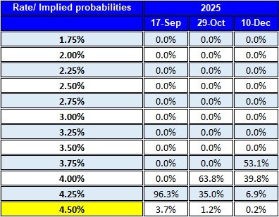 But even if we accept these numbers, they suggest that inflation expectations for the medium term are anchored not too far off their 2% target indicating the whole tariffs saga is expected to have a transitory effect on the economy; and as interest rates still well above the terminal rate, the current Fed’s policy rate continues to curb inflation. Hence, perhaps, the Fed won’t have to fight stagflation, as it did back in the 70s. Thus, the current economic environment is more inclined to accept further interest rate cuts by the Fed, even as core CPI is above 3%.